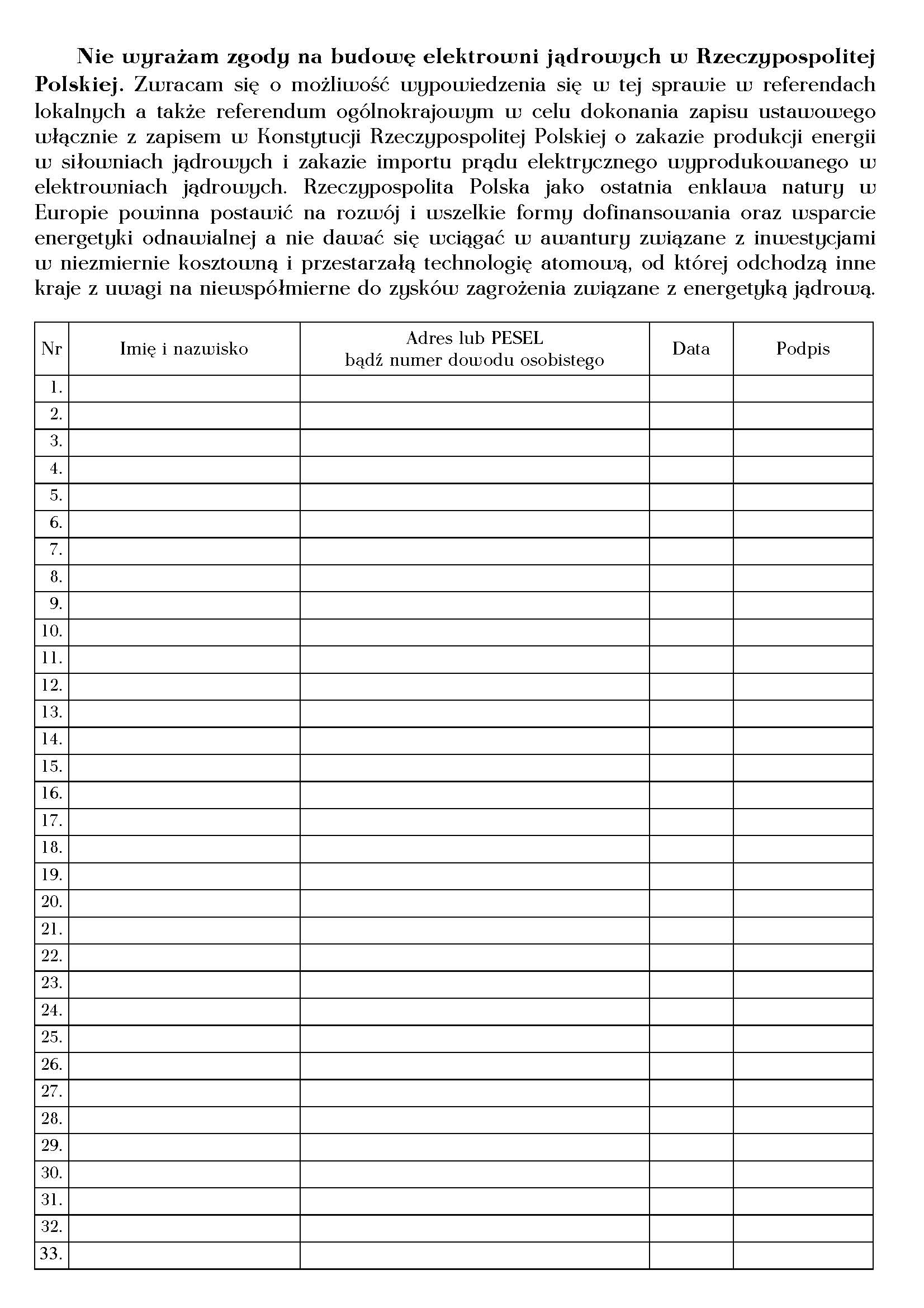 Pobierz jako: Nie wyrażam zgody na budowę elektrowni jądrowych (PDF) | ||||||